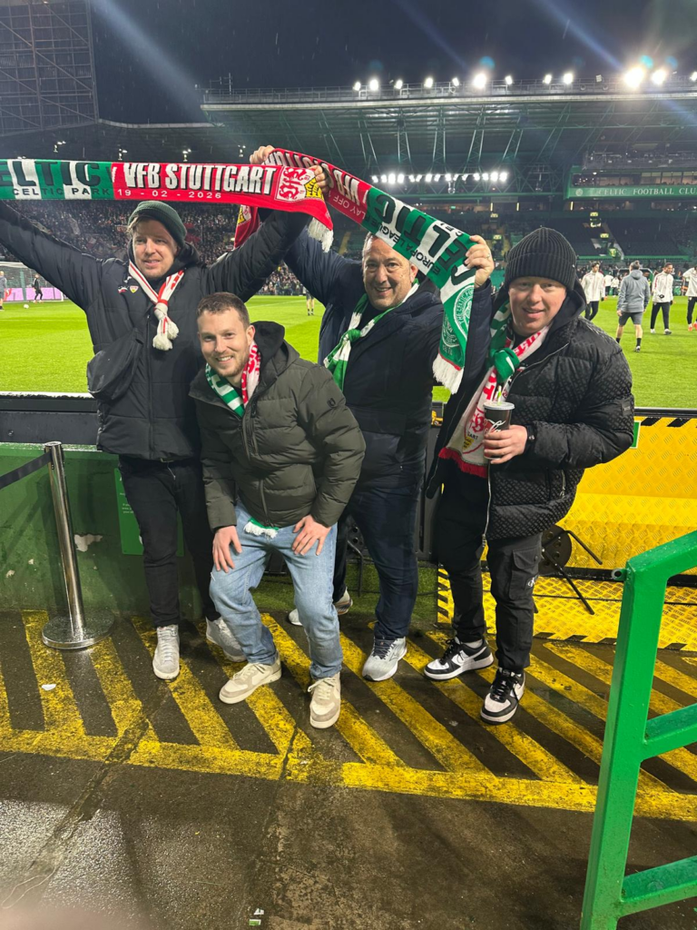 Der OFC Sala Weiss-Rot war in Glasgow vor Ort, um den VfB Stuttgart in der Europa-League-K.-o.-Runde lautstark zu unterstützen – am Ende stand ein überzeugendes 4:1 für den VfB im Celtic Park. Schon rund um den Spieltag zeigte sich Glasgow „unter anderem in Weiß und Rot“ auch durch Unterstützung durch unseren OFC.